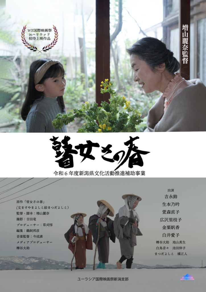 目が見えない少女時代に親元を別れて厳しい修行をしていた瞽女文化は、1970年代まで新潟県に残っていた慈悲深い文化だ。令和6年新潟県文化補助事業として絵本「瞽女さの春」を原作者ますやまよしこの娘、増山麗奈が映像化。